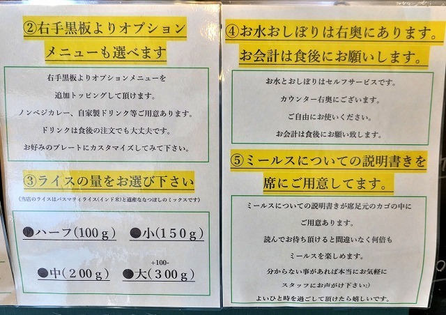 3.ライスの量は、ハーフ(100g)、小(150g)、中(200g)、大(300g)は+100円。