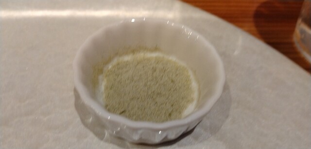 次に藻塩でも柚子胡椒でもなくなく山葵塩をつける