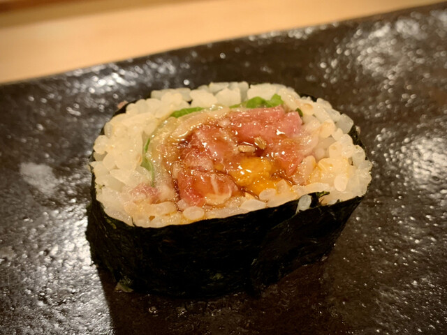 マグロ、エビ、ウニトロ巻き、これが好きです笑