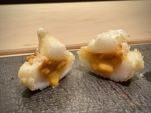 天ぷらは絶品。三宮の花歩で食べる天ぷらをココでも。もっと食べたいと思いますが笑イカとウニが美味く、この時期だけとの事で、セルフィーユルート。これが絶品でした。