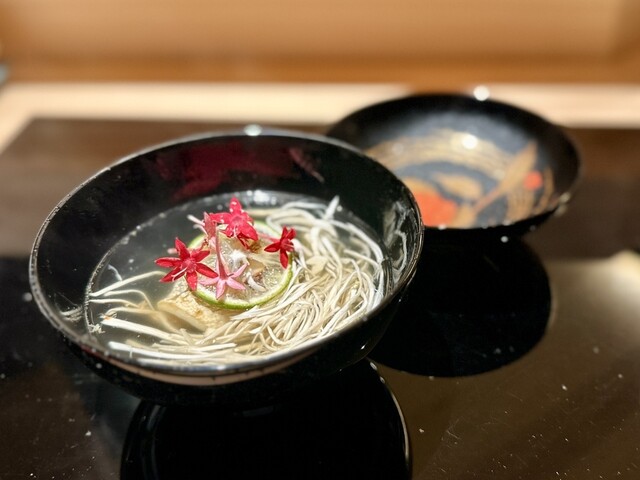 吸物の松茸は、そうめんのようにスライスされ、初めての食感でした。
