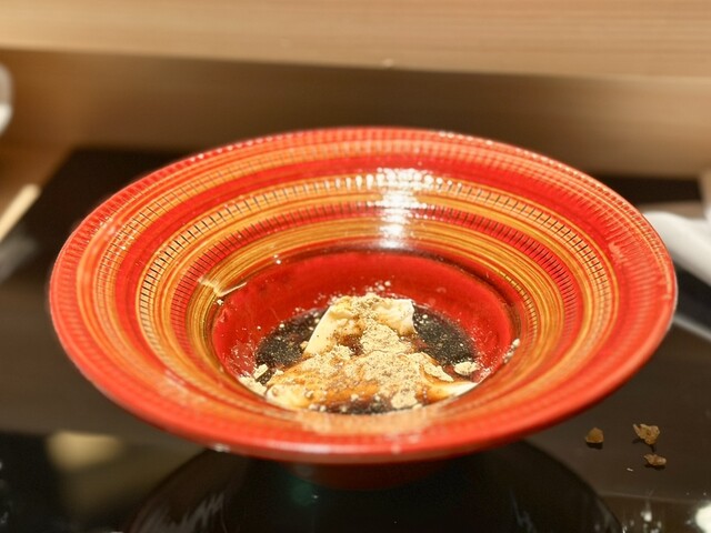 また、最初に出てきた、蟹の湯引き…半生で食べた蟹は、肉厚でこちらも初めての食感でした。