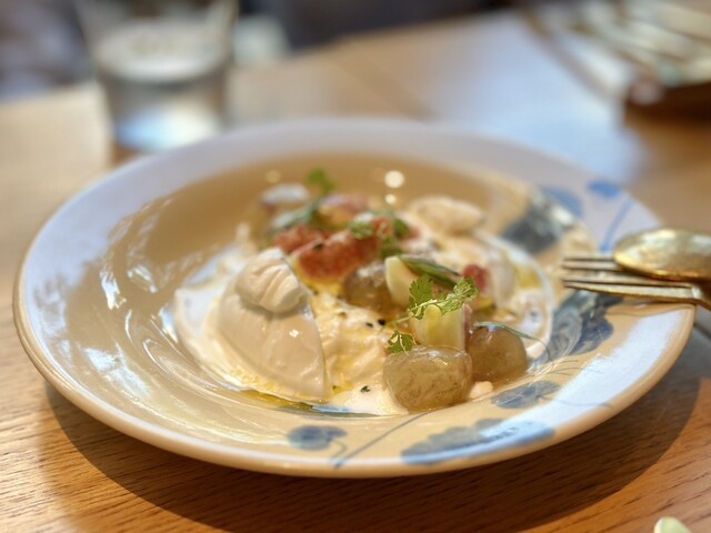 季節のフルーツサラダは、イチジクと巨峰。まあ、コレは相変わらず美味い。ブッラータがおいしく、それにフルーツが絡むと良い感じに。