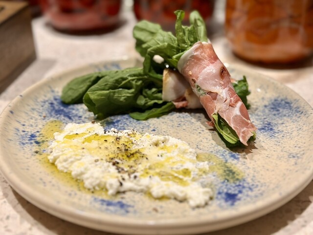 フルーツマリネとブッラータは、定番。今月のフルーツは桃でした。コレが美味かった。チーズは相変わらずですが、桃が甘くてチーズとよく合いました。