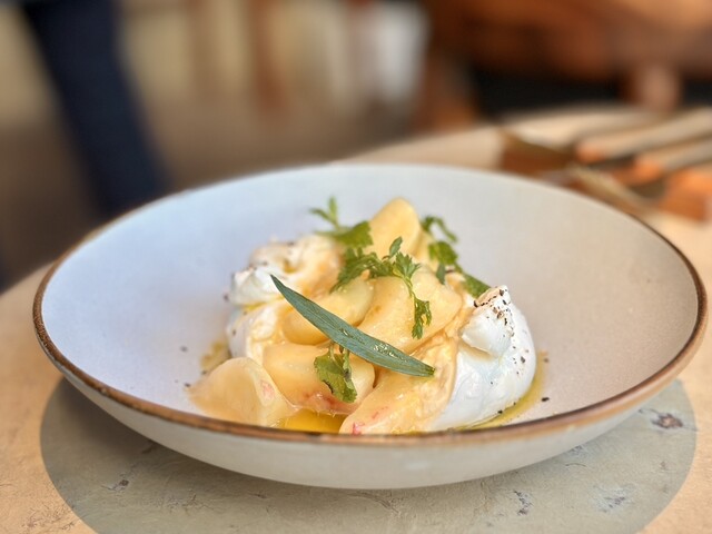 この日のフルーツマリネとブッラータは、枇杷でした。