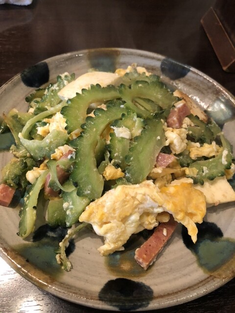 料理はゴーヤチャンプルや島らっきょうなど一般的な沖縄料理店で食べられるメニューは当然美味しいのに加えて油そーめん、ゴーヤチップス、ゴーヤビールなどあまり見かけないメニューもあり心踊る。さらにこの珍しいメニューがどれもエース級の美味しさ。