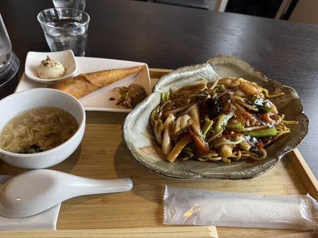 個人的五つ星。脳内が痺れるぐらいの旨さ。絶品皿うどん(太麺)1,000円。とハイボール。