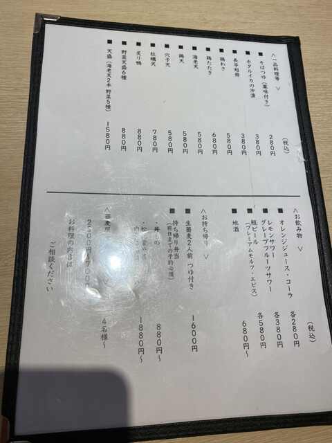 通常メニューの中にはお酒にあうような単品メニュー(馬刺し、鶏の叩き)なんかもあり、またお酒は田酒(青森のおいしいお酒)がおいてあったり飲めるお蕎麦やさんの印象。