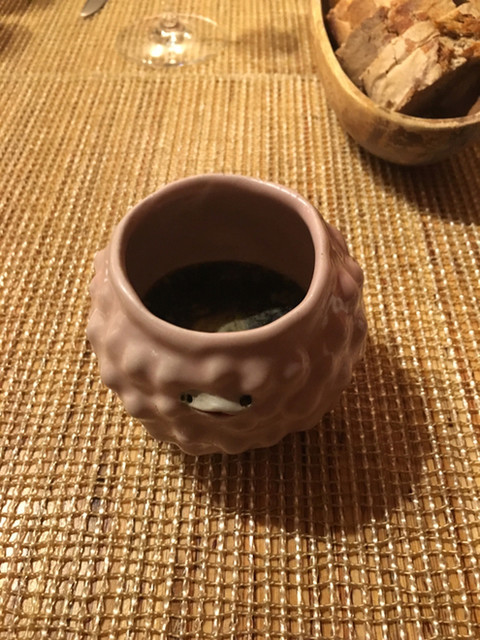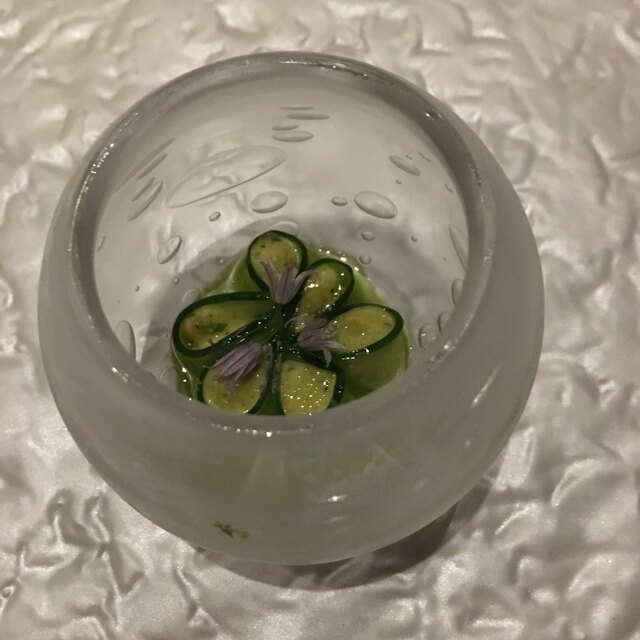 少し早めに着き、他の6時半の客が来るのを待つ。その間にミモザを飲む。