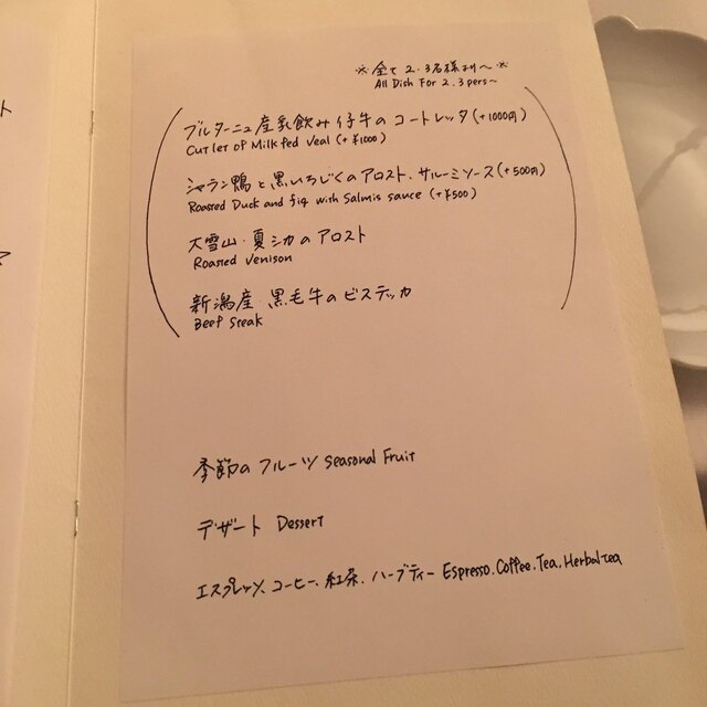 レベル高い料理をちゃんとした値段を取り、雰囲気を上品にして、接客も一人だけに任せて、調理は全部シェフが行う。その時その時が勝負。今後はこういうスタイルの店が生き残っていくんじゃないのかな。人手不足の問題は解決されないだろうし、いいもん食べたい人は減らないだろうから、このような少人数相手に小さくありながらしっかりとやる営業スタイルが増えていくはずだし、ある意味レストランの最終形態じゃないのかな。