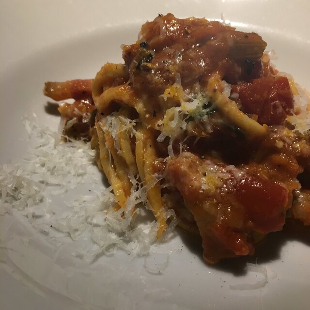 –完熟トマト パンチェッタ 卵黄で和えたトンナレッリ