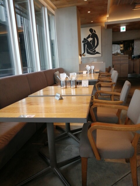 大きな窓ガラスに差し込む光が最高なコーナーに座ります。