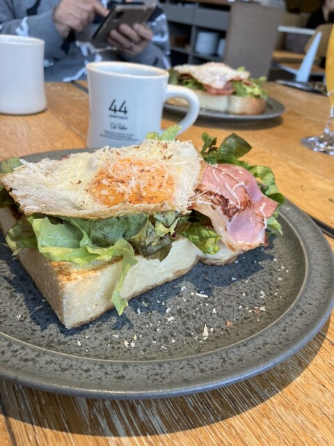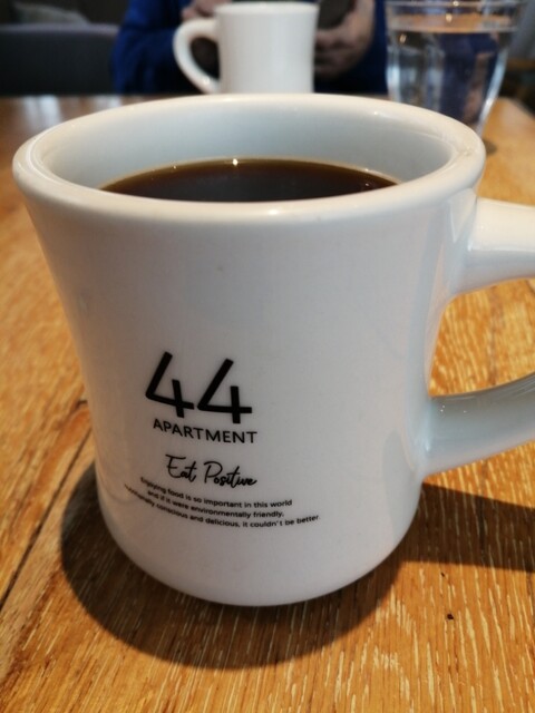 「44APARTMENT(海老名店)」の店頭に掲げられているモーニングサービスの看板が横目に入り