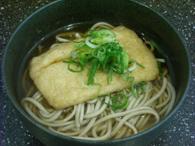厚めの油揚げをきざんだものを、そばが隠れるくらいにのせています。