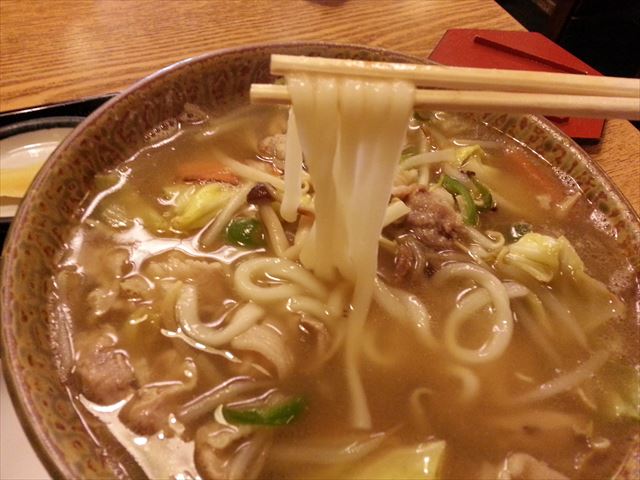 うどんの麺は細くて、温かいのでとってもやわらかい。