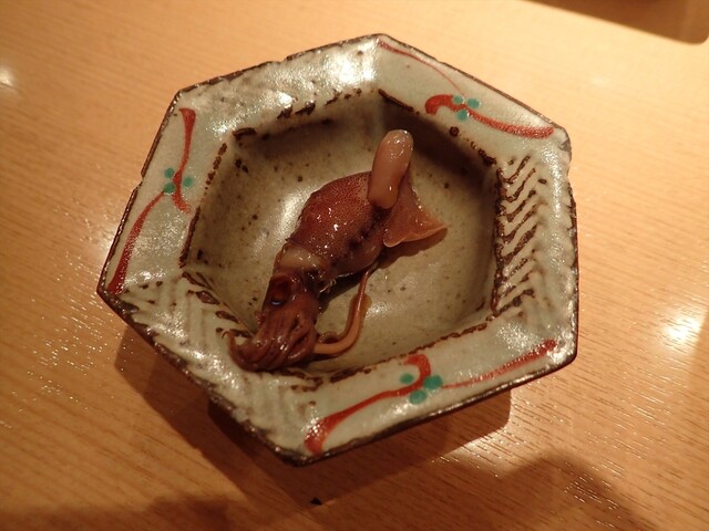 お通し的な感じ。白えびのこのわた和えは、今まで食べたことないけど、白えびの風味、甘さとこのわたの旨味が効いて、お酒が進む一品。