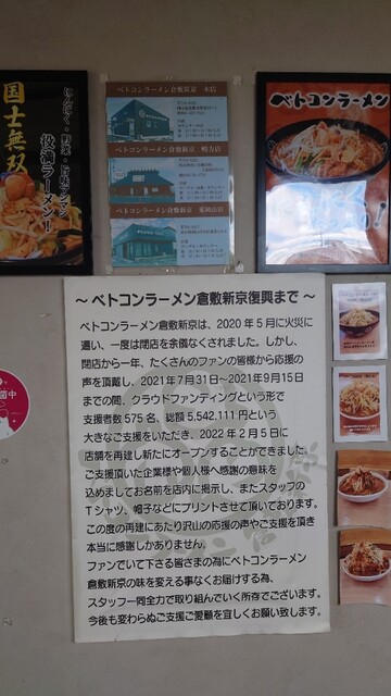 入口を入るとすぐに券売機とその横にこの店が火災に遭い、そのあと復活までの話が書いてありました。