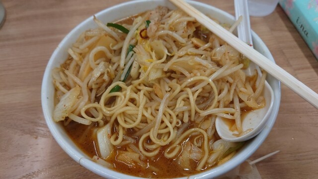 まずスープをいただくと野菜の出汁が入った、また鷹の爪のピリ辛が入る食べやすく美味しいしょうゆ味です。(味噌味もあるようです)