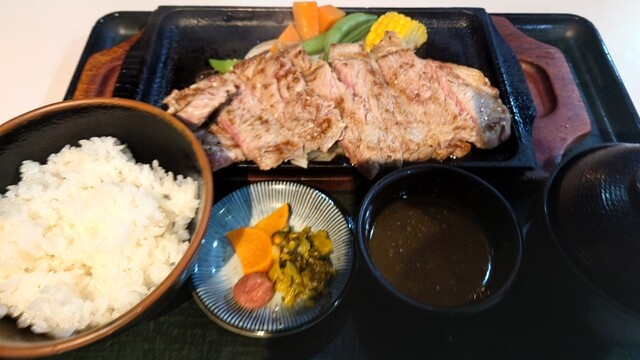しばらくすると、そこにステーキが載せられて配膳されてきました。