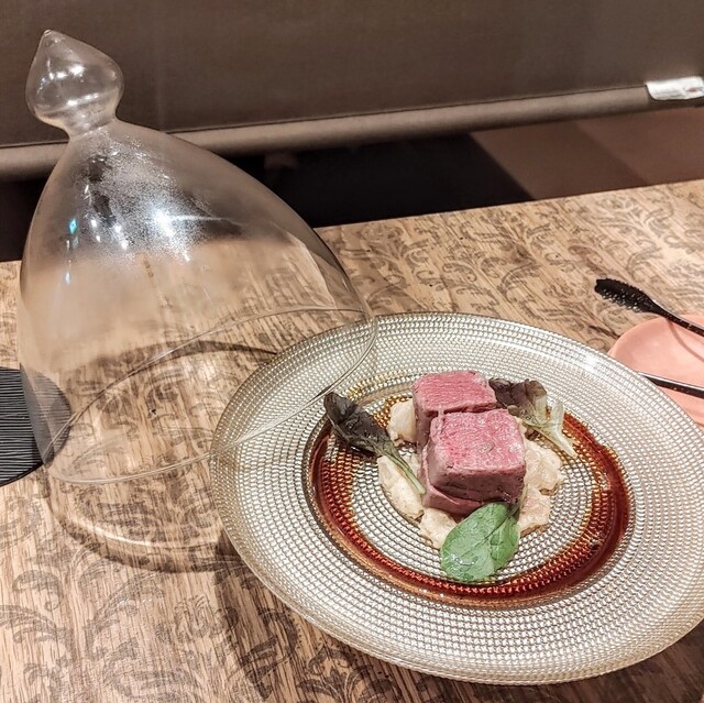 燻製の真っ白な煙に包まれたお皿が目の前にやってきて、
