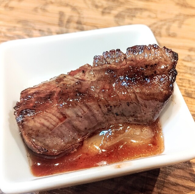 タン焼きしゃぶ:ネギダレをたっぷりつけて頂きます。口の中でジュワっと広がるおいしさがたまりませんね