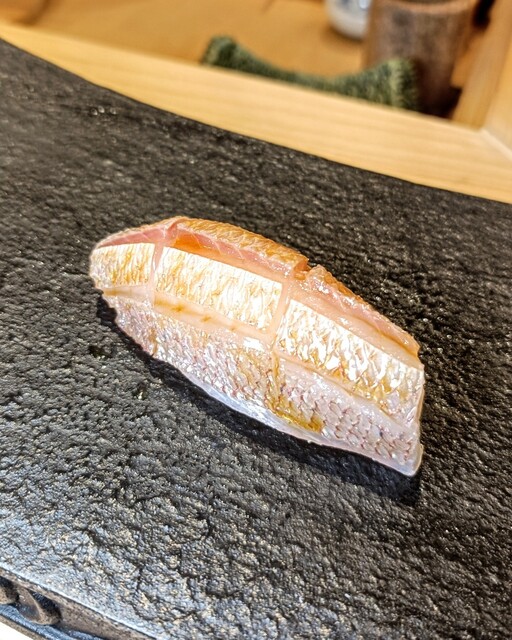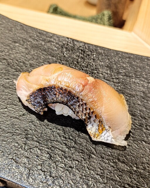 1週間熟成された八幡浜のイサキ、脂がのってて旨味が最高です。皮がまためちゃうんまい