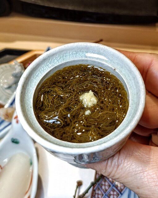お席から大将の丁寧なひとつひとつのお仕事を眺めながら、ゆったりとコースを頂くことができます。