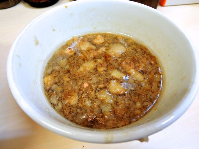 スープをゾゾゾっと啜る楽しみは残念ながらないけど、この繊維状にほどけた固形アブラとか旨味がジュワジュワ出てきそうな具材、見た目だけでゴクッとなっちゃう