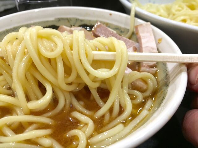 つけ丼に漬けて、麺を引き上げるとっ!