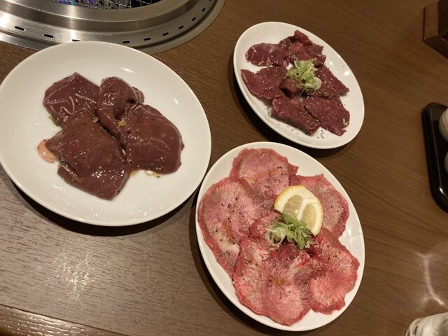 その中から上タン(十勝産)、上サガリ(十勝産)、中落ちカルビ(国産)、レバー(十勝産)、ハツ(十勝産)などを焼くことに。サイドメニューもちょこちょこと頼みます。