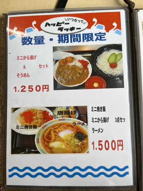 メニューは町の食堂らしく多彩なラインナップ。どれにしようかと迷いましたが、カツカレー(1,080円)を選択。デカ盛り食堂との事前情報、しかも大盛は+500円ということで、頼んだら恐ろしいことになりそう……と自重。並盛にします。