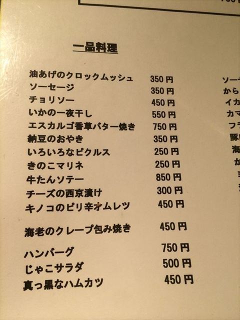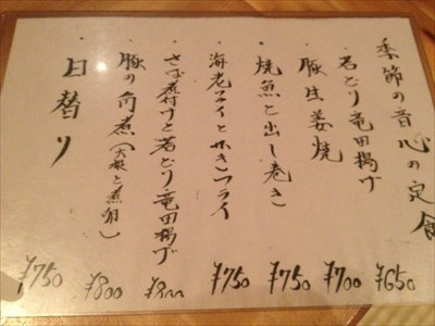 夜のメニューはこのような感じ。(初訪問は夜でした)