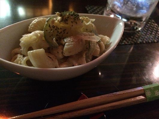 付きだしは、食べきられませんでしたがマカロニサラダ。