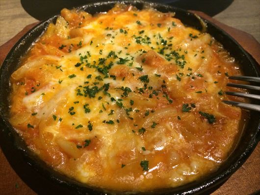 トマトソースの赤が食欲をそそります。