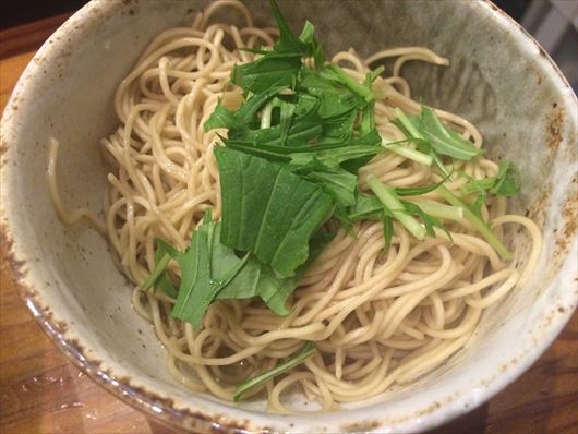 細麺を固めにゆで上げたものに、にぼしオイルがかかっています。