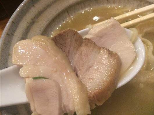 これが一番基本のラーメンですが、どうやらお肉は3枚(鶏ムネ、鶏もも、豚バラ)入っているようです♪嬉しいですね^^