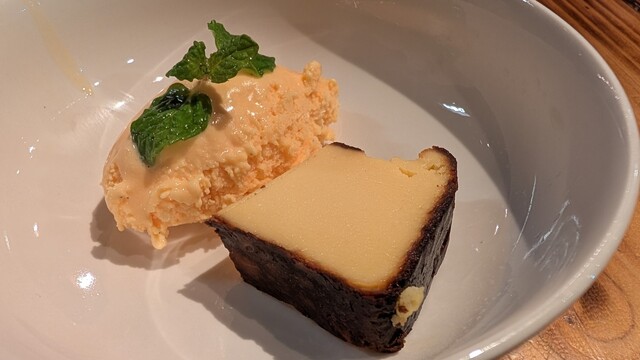 ◆デザートはバスクチーズケーキと自家製バニラアイス。バニラアイスが黄味がかってる!?と思って聞いてみると、自家製でたまごの分量を多くしているとのこと。