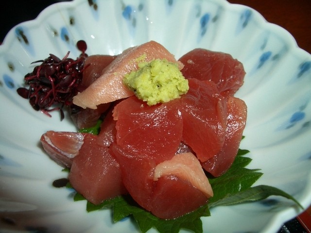 煮魚定食には、鮪ぶつが、一品多く乗っています。