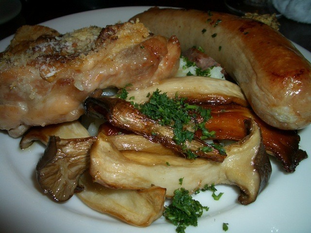 若鶏のロースト、伊賀豚ソーゼージ添え