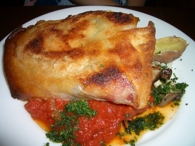 メインは、若鶏のロースト、伊賀豚ソーゼージ添えに、天然鯛とサーモンのパートラリック包みです。