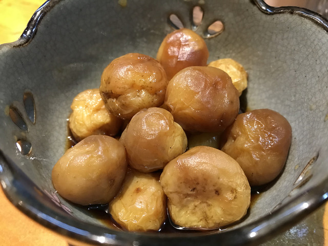 ◆新玉ねぎの煮付けに、有精卵を使った特製の親子丼