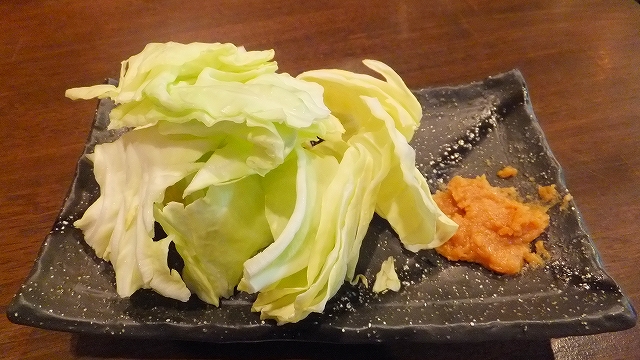 このにんにく醤油が甘めで。。。キャベツにつけると