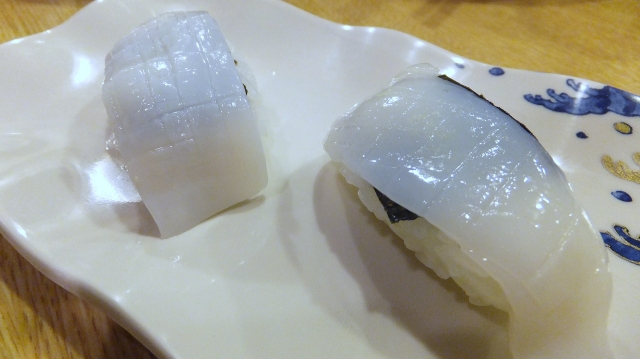 イカは、隠し包丁が細かく入っています。