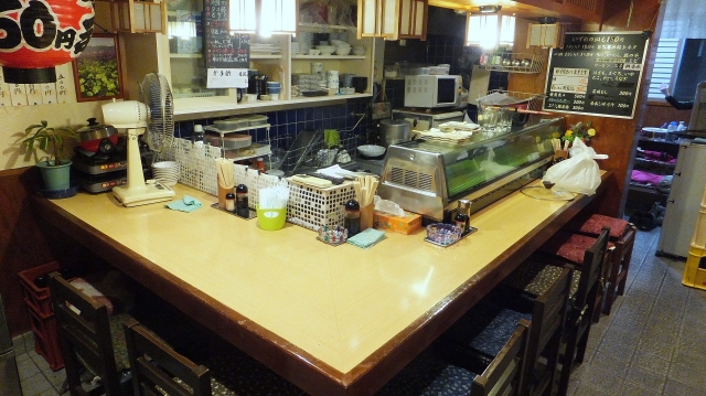 お店は、カウンターに7人座ることができます。