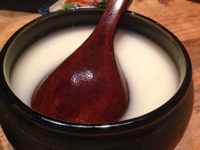 一緒に入っている氷を溶かすと、スープが冷たくなって、味が濃くなってきます。