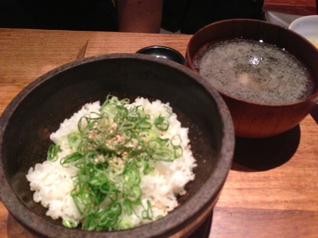 熱々の石焼き鍋にご飯が入っていて、その上からスープをかけるんです。