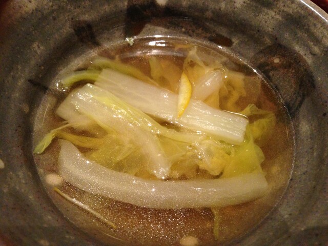 塩煮込みのダシを飲むと、
