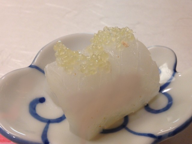 小皿の上には、真っ白なアオリイカが乗って出てきました。
