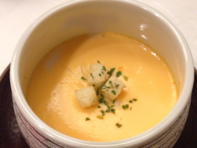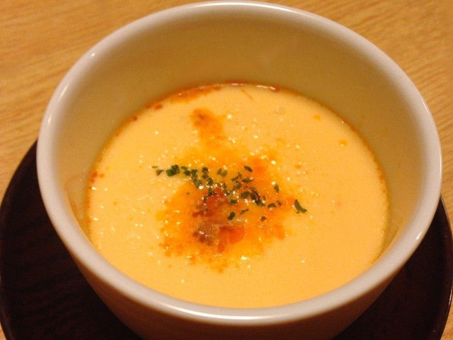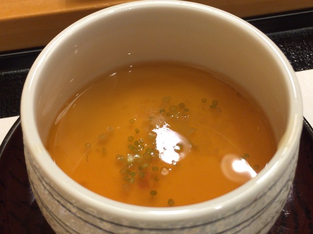 次に出てきた茶碗蒸しですが、表面が濃厚な黄色なんです。
