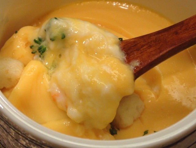 白いホワイトソースの登場です。茶碗蒸しにホワイトソースですよ。
